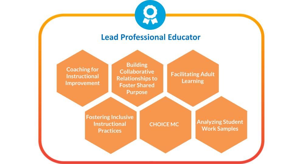 A Lead Professional Educator license designation is intended for a teacher who is choosing to lead primarily from outside the classroom, mentoring and supporting other teachers in their development of strong practices. You will notice that one of the MC slots is a “choice” MC, you will have the option to choose between: Structuring the Classroom to Support All Students OR Recognizing and Upholding Academic Rigor.